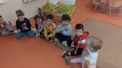 A l’aula hem treballat la cançó d'a poc a poc/depressa, havent d’escoltar conscientment quan sona un ritme o altre (els ha agradat molt!!!). També han hagut d’endevinar quin objecte sona (sense veure´l, és clar). I hem pogut ampliar el vocabulari de la tardor!!!